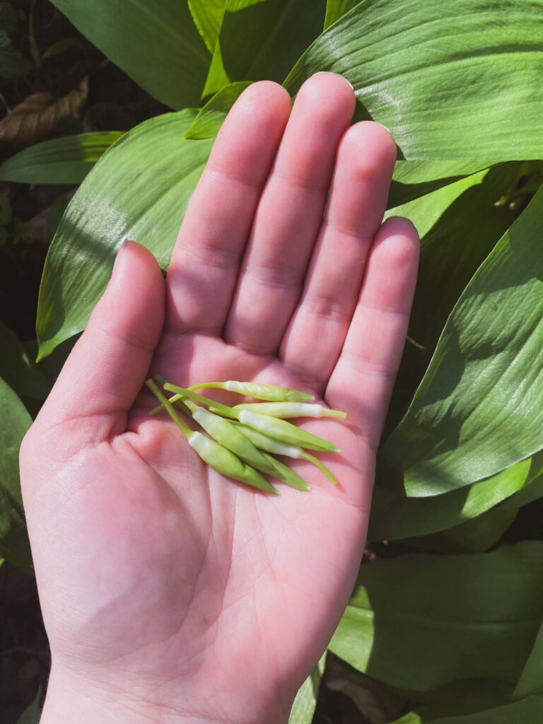 Die Bärlauchsaison ist hier in vollem Gange und bei den ersten Pflanzen zeigen sich auch schon langsam die ersten Knospen.