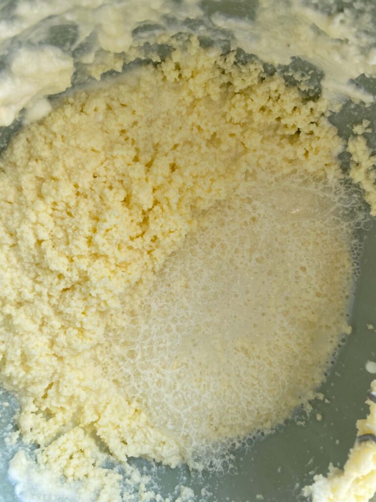 Letztendlich schlägt man die Sahne einfach nur so lange, bis sich die “Butter” von der Buttermilch trennt, dies sollte ca. 10 min. – 15 min. dauern.